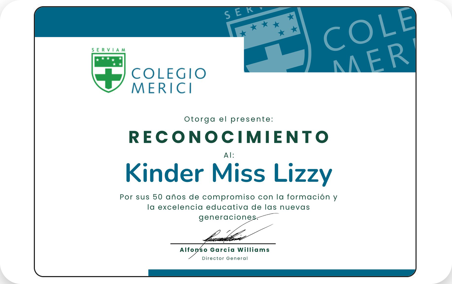 Kinder Miss Lizzy abrió sus puertas el 2 de septiembre de 1976, iniciando así una larga trayectoria educativa.